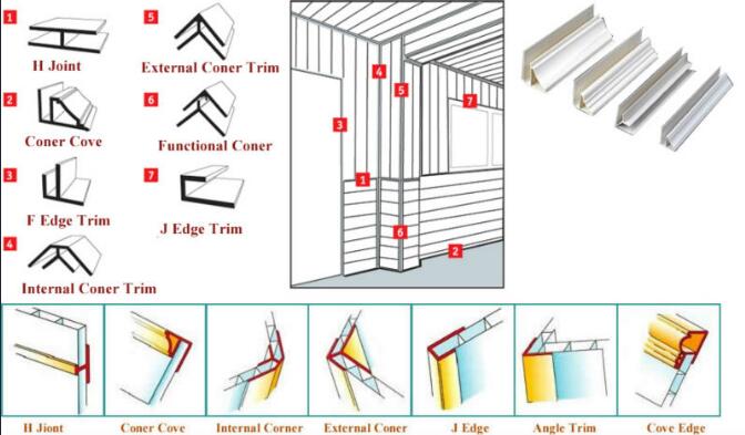 (1) ที่มุมของผนังและผนังเราสามารถใช้โปรไฟล์การไหลออกของพีวีซีภายนอกเพื่อเชื่อมต่อสองชิ้น